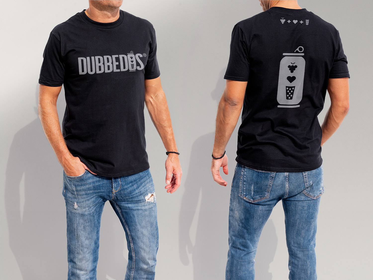 • Hellgrauer DUBBEDOS-Logoprint auf der Brust
