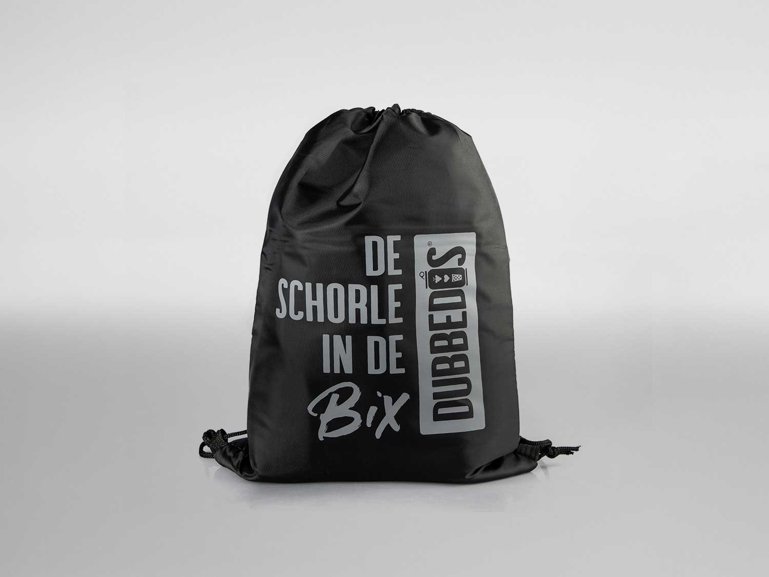 - Schwarzer Sportbeutel in den Maßen: 42 cm hoch und 32 cm breit