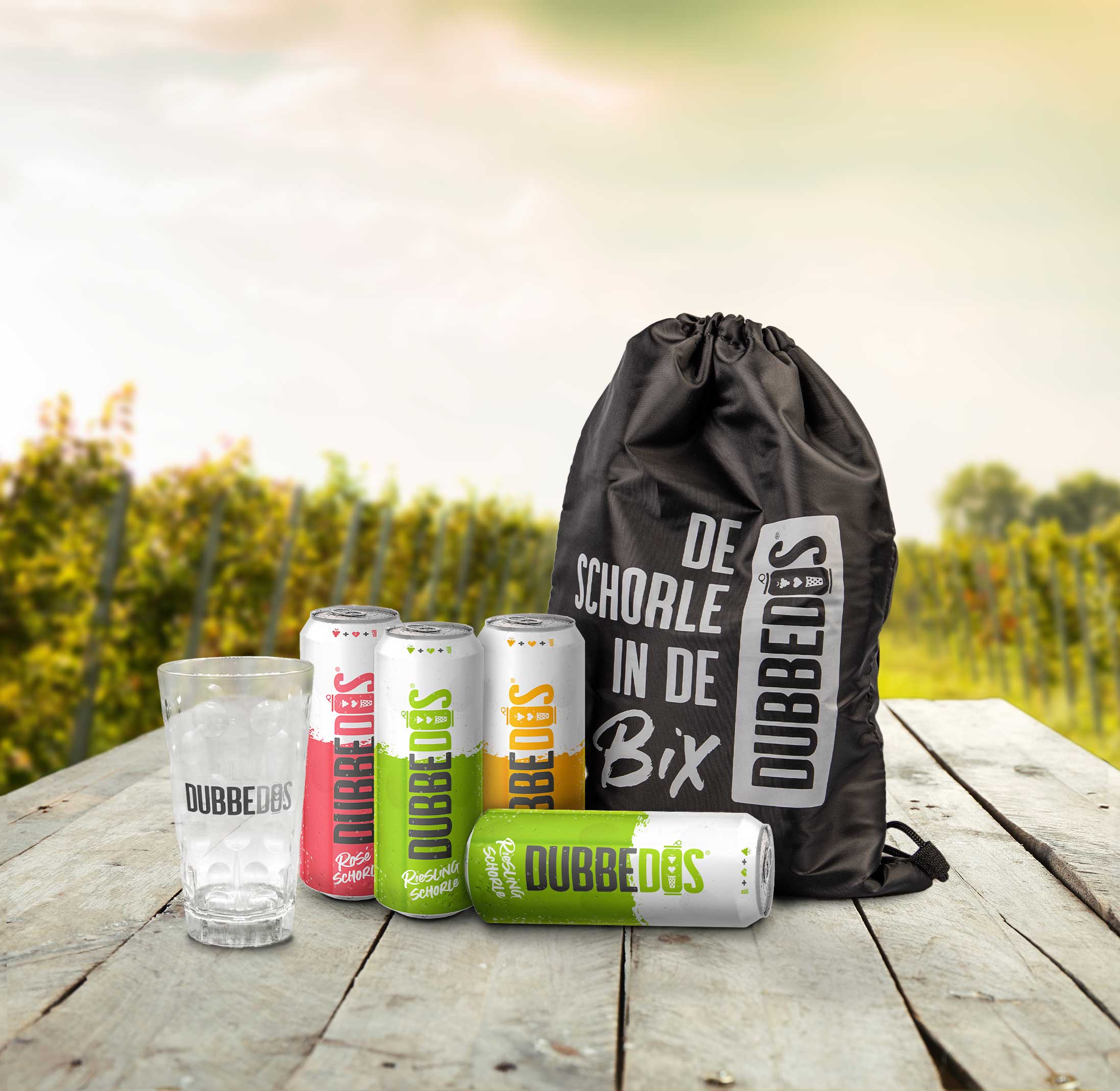 Du liebst es, die Natur zu erkunden und suchst nach der perfekten Erfrischung für unterwegs? Mit dem DUBBEDOS Wanderpaket M bist du bestens ausgerüstet! Das Paket enthält zwei Dosen Rieslingschorle, jeweils eine Dose unserer Sorten Roséschorle und Die Süße und einen DUBBEBECHER.